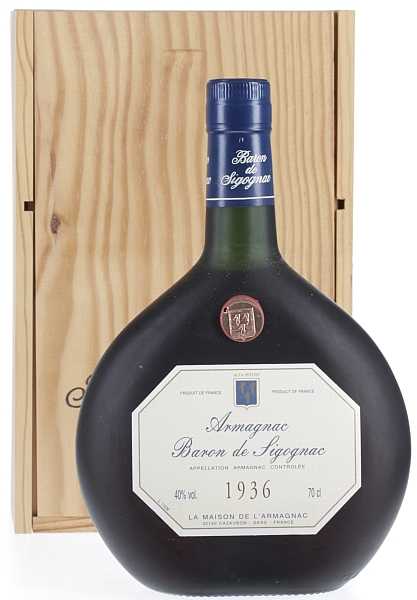 Dieser Jahrgangs-Armagnac von Baron de Sigognac ist eine absolute Rarität, die ausschließlich aus Trauben des Jahrgangs 1936 gewonnen wurde. Das französische Traditionshaus ist eines der ältesten und weltbekannt für seine Kellereien, in denen seltene Jahrgangs-Armagnacs langsam und ungestört heranreifen. Bei Baron de Sigognac liegen sowohl die Weinstöcke als auch Destillation, Lagerung und Abfüllung in einer Hand. Diese Besonderheit ermöglicht eine genaue Kontrolle über jeden einzelnen Schritt in der Produktion und garantiert die gleichbleibend hohe Qualität der Weinbrände. Die Jahrgangs-Armagnacs von Baron de Sigognac sind dafür bekannt, dass sie eine ausdrucksstarke Aromatik und einen ausgesprochen milden Charakter in sich vereinen. Diese Eigenschaften haben sie der einfachen Destillation in kontinuierlicher Methode und der Lagerung in Holzfässern aus Steineiche zu verdanken. Weil das Alkoholvolumen von Armagnac bereits vom Ausgang her recht gering ist, muss er zur Abfüllung meist nicht mit Wasser auf Trinkstärke herabgesetzt werden. Für viele liegt auch darin sein ausdrucksvolles Profil begründet.