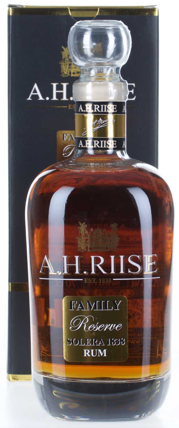 Die Grundlage vom A.H. Riise Family Reserve bilden diverse Rumdestillate aus Mittelamerika und der Karibik, genauer den ehemaligen Danish West Indies, heute Jungfern-Inseln genannt. Sie wurden von A.H. Riises Master Blender ausgesucht. Der Spirit Drink reifte für rund 25 Jahre und lagerte im Solera-Verfahren. Das wird eher in der Herstellung von Sherry, Málaga, Brandy oder Gletscherwein verwendet, eignet sich allerdings auch, um Rum und Spirit Drinks natürlich zu blenden.