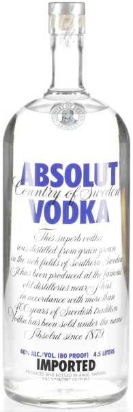 In der riesigen 4,50l Flasche ist Absolut ein Highlight auf jeder Feier und Party. Allein die Größe der Flasche zieht alle Blicke auf sich und macht den Vodka zum -absoluten- Gesprächsthema.