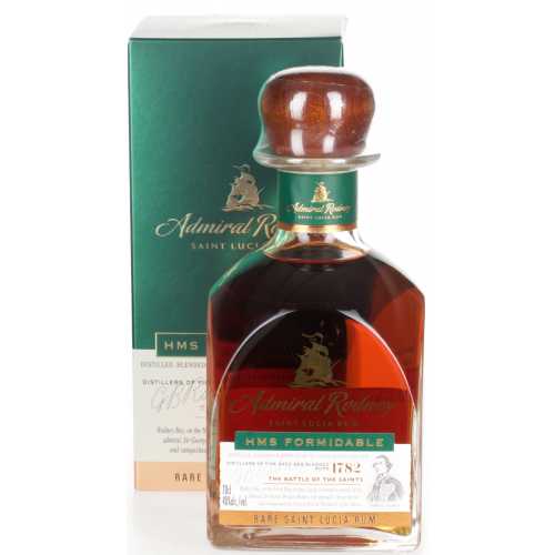 Der HMS Formidable ist ein Blended Rum der Rum Marke Admiral Rodney. Diese wird in der karibischen St. Lucia Distillers Group of Companies produziert. Die Marke Admiral Rodney ist nach dem gleichnamigen britischen Admiral benannt. Dieser führte im 18. Jahrhundert eine Flotte mit 22 Schiffen, die erfolgreich für die britische Marine kämpften. Die HMS Formidable war eines von ihnen. Ausgeschrieben lautet ihr Name His/Her's Majesty's Ship, also das Schiff der Majestät. Dieser Blended Rum trägt somit einen ehrwürdigen Namen, dem er durchaus gerecht wird.