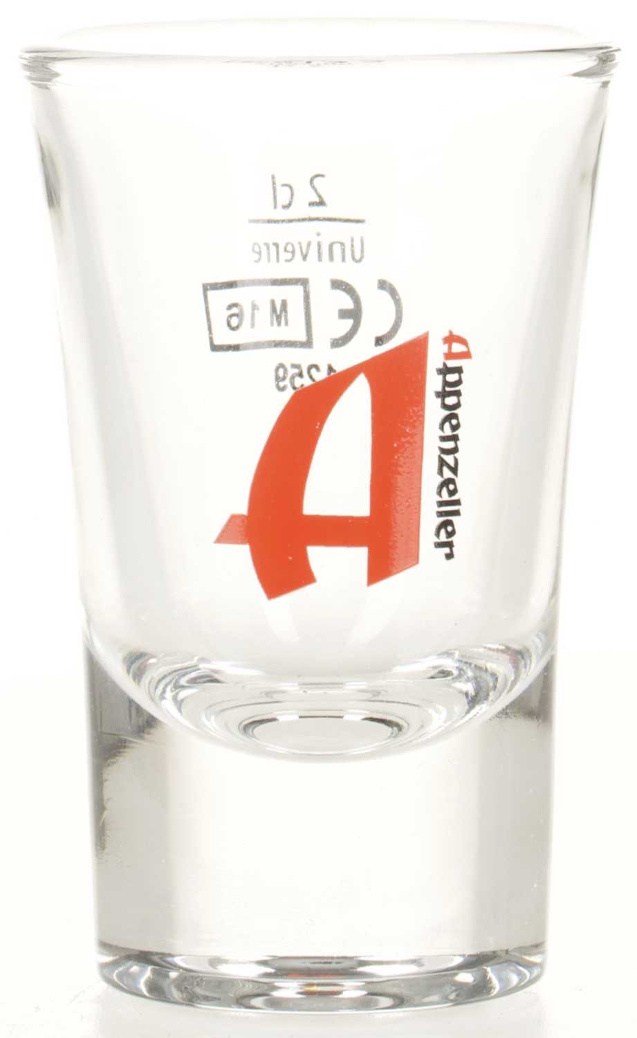 Die schlichten Shot-Gläser mit dem Füllstrich 2cl sind mit dem Markenzeichen des hocharomatischen Appenzeller Alpenbitters verziert. In den original Stampern kommt die dunkle Farbe des Schweizer Kräuterlikörs besonders schön zur Geltung - ein Anblick, der angenehm auf den Genuss einstimmt. Das Schnapsglas kommt ohne Fuß, dafür aber mit einem dicken Boden daher. - Der Preis gilt für sechs Gläser