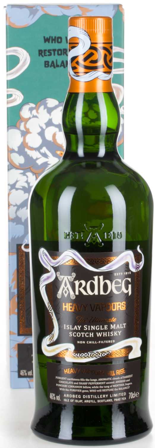 Der Ardbeg Heavy Vapours ist eine außergewöhnliche Sonderedition aus der renommierten Brennerei Ardbeg, bekannt für ihre unverkennbar torfigen Whiskys von der schottischen Insel Islay. Dieser Single Malt Whisky zeichnet sich durch seine markante Abweichung vom traditionellen Herstellungsprozess aus: Zum ersten Mal in der Geschichte der Destillerie wurde die berühmte Purifier-Komponente der Brennblasen entfernt. Dadurch entfaltet sich ein intensiver, ungebändigter Rauchcharakter, der den Geschmackshorizont von Ardbeg auf eine neue Ebene hebt.