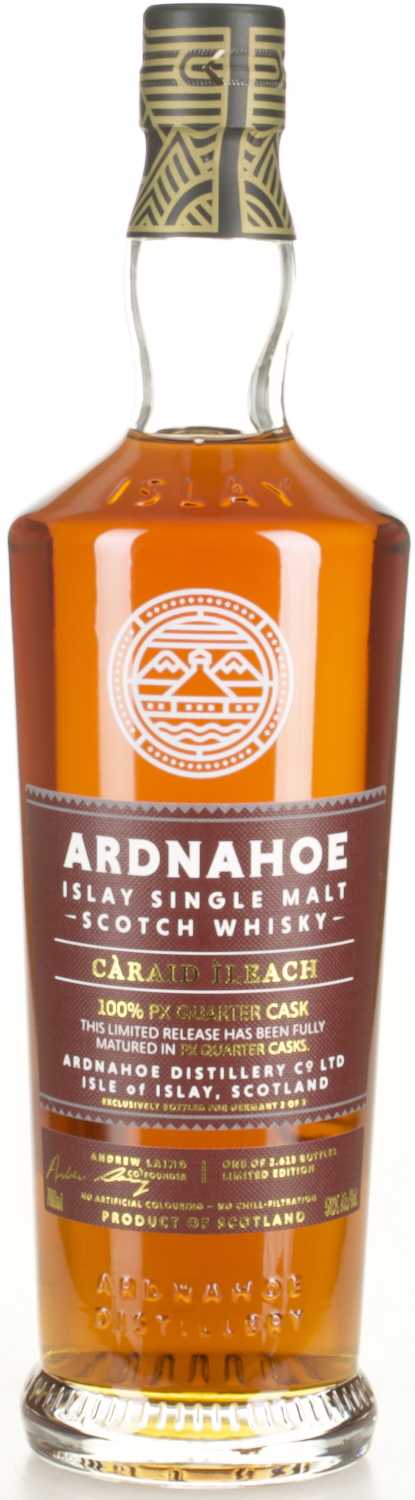 Der Ardnahoe Caraid Ileach 100 % PX Quarter Cask ist ein faszinierender Single Malt Scotch Whisky von der schottischen Insel Islay, der den intensiven Charakter traditioneller Torfigkeit mit der süßen, tiefen Aromatik spanischer Sherryfässer verbindet. Diese besondere Edition wurde bewusst so komponiert, dass sie sowohl die maritime Herkunft als auch die reiche Fassgeschichte in jedem Tropfen widerspiegelt - ein Whisky für Genießer, die Komplexität und Tiefe suchen.