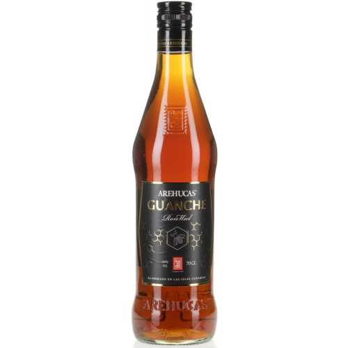 Arehucas Guanche Licor de Ron Miel ist ein Likör auf Rumbasis und stellt eine besondere Spezialität von den Kanarischen Inseln dar. Der zur Herstellung verwendete Rum aus der Destillerie Arehucas ist bereits seit über 50 Jahren der meist getrunkene Rum der Kanaren. Sieben Jahre lang wurde er gelagert und anschließend mit erstklassigem Honig aus dem Kanarischen Hochland aromatisiert. Dadurch erhält dieser Likör einen exzellenten Geschmack. Schon seine dunkelbraune Farbe ist wunderbar intensiv und ansprechend und lädt zum Probieren ein. Öffnet man die Flasche, so entfaltet sich ein angenehm mildes Bouquet, das eine harmonische Balance aus Süße und Würze besitzt. Am Gaumen präsentiert sich der Arehucas Ron Miel Likör unglaublich cremig und weich. Er besitzt einen vollen Körper und zeichnet sich durch sein liebliches Honigaroma aus, das durch eine pfeffrige Würze raffiniert ergänzt wird. Im Abgang zeigt sich der Likör lang anhaltend und sanft.