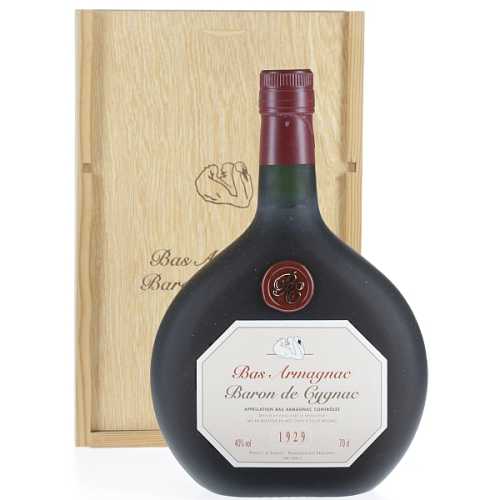 Geprägt von der milden Meeresluft des Atlantiks und den kräftigen Winden des Mittelmeers hat der Armagnac beste Voraussetzung für seine Reifung. Dieser Jahrgangsarmagnac wird doppelt gebrannt auf 60%vol. Danach reifen die Armagnacs teilweise jahrzehntelang in Eichenfässern, bevor Sie auf Trinkstärke gebracht und abgefüllt werden. Der Baron de Cygnac erscheint in einer leuchtenden Farbe von strohgelb bis dunkelbraun. Für diese Färbung ist die lange Lagerung in hochwertigen Eichenfässer verantwortlich. Seine traditionelle Formflasche mit Emblem repräsentiert die Qualität des Produktes auch optisch.