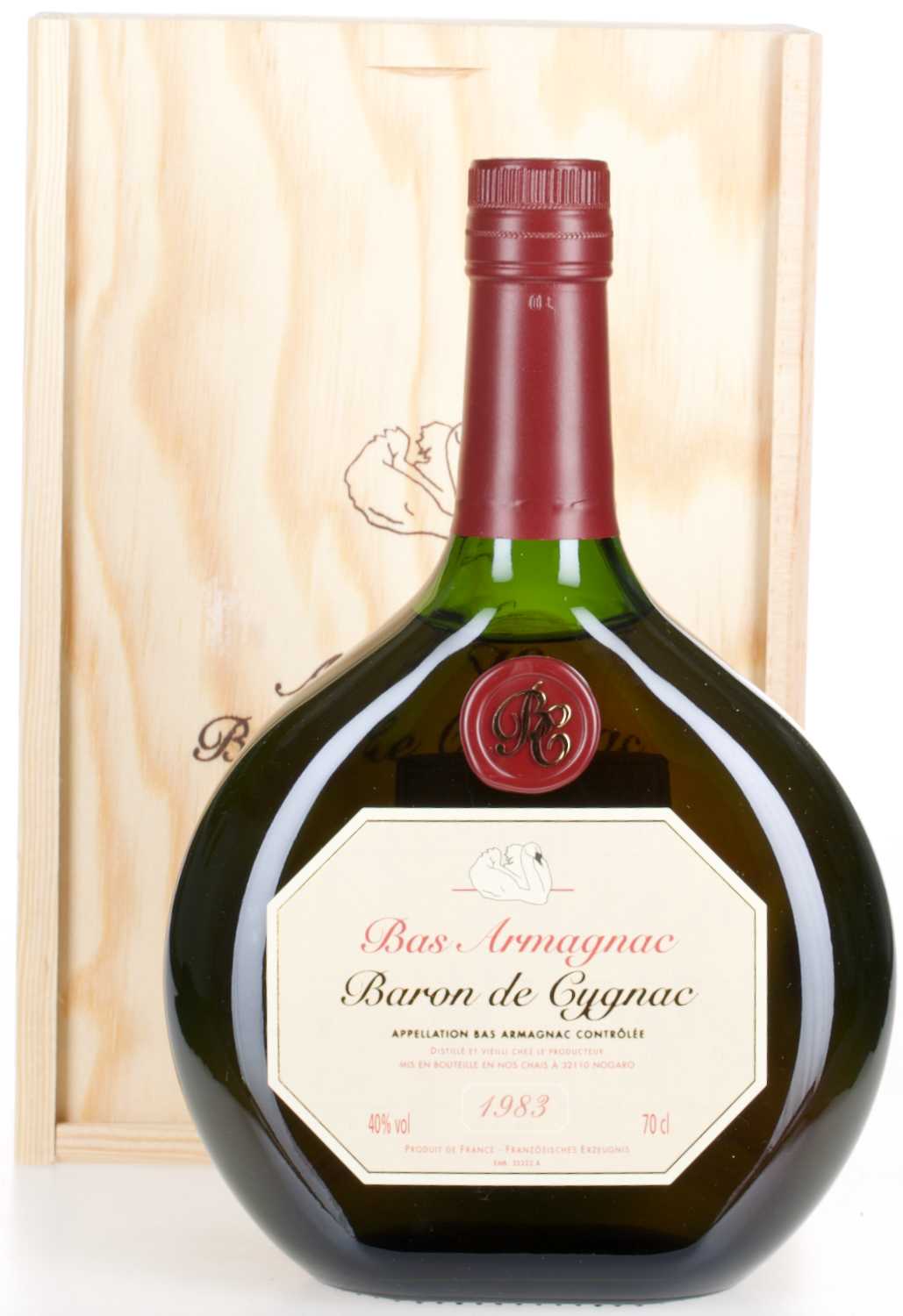 Jahrgangs-Armagnac von 1983. Ein ideales Geschenk für Jubiläen und Geburtstage.