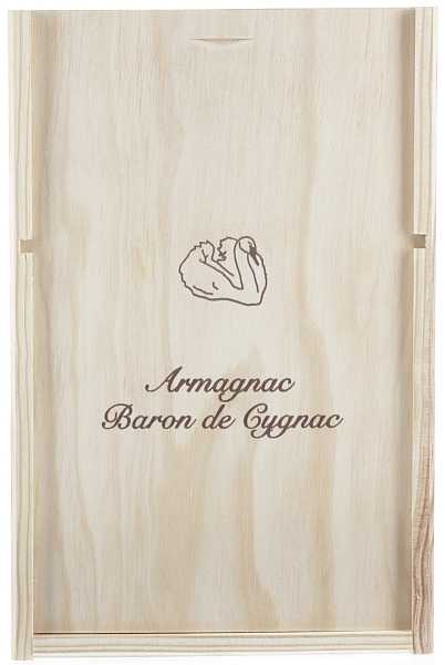 Original Holzkiste für die Armagnacs von Baron de Cygnac.