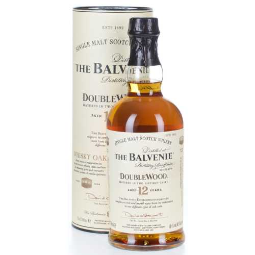 The Balvenie DoubleWood 12 Years ist einer der Single Malts, welche immer wieder genannt werden, wenn es darum geht festzustellen was Scotch ausmacht und welche Abfüllungen man in seinem Leben getrunken haben sollte. Dies liegt mit Sicherheit auch daran, dass David Steward, der Master Blender bei Balvenie, Anfang der 1980er Jahre als einer der ersten damit begann den eigenen Whisky einer zweiten Reifephase in europäischen Sherryfässern zu unterziehen. Was damals revolutionär war, ist heute in der gesamten Industrie sehr verbreitet und ein besonders beliebtes Verfahren, welches Whiskyenthusiasten besonders schätzen. Zunächst reift der DoubleWodd in ehemaligen Bourbonfässern für 12 Jahre zu einem ohnehin schon komplexen und körperreichen Scotch heran. Seine Qualität wird dann noch durch mehrere Monate in ehemaligen Sherryfässern weiter gesteigert und verfeinert. An dem Ergebnis können wir uns heute immer wieder aufs Neue erfreuen.