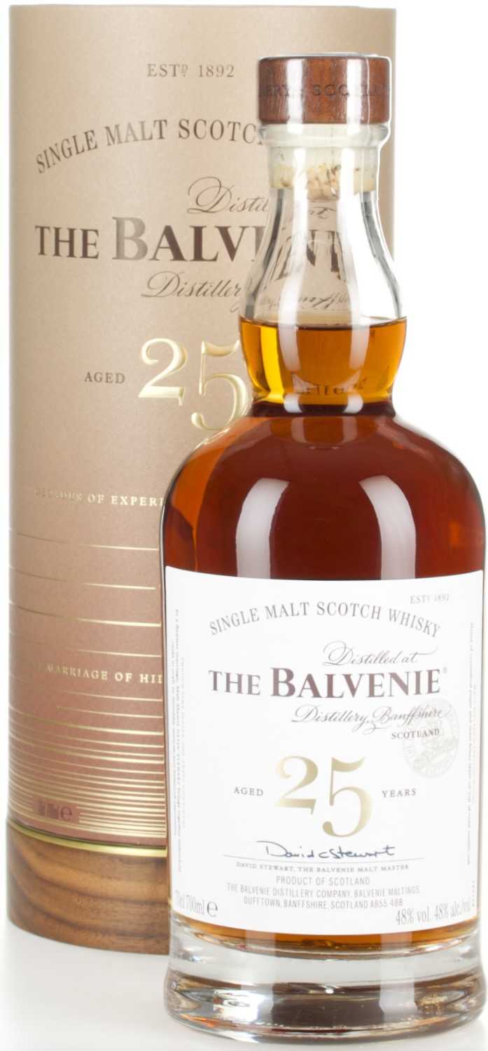 Dieses begehrenswerte Sammlerstück aus der Speyside in Schottland gehört zur Rare Marriages Range der berühmten Destillerie The Balvenie. Der Balvenie 25 Years Single Malt Whisky zeichnet sich durch eine perfekte Symbiose seltener, lange gereifter Casks und sein komplexes Aromenprofil aus.