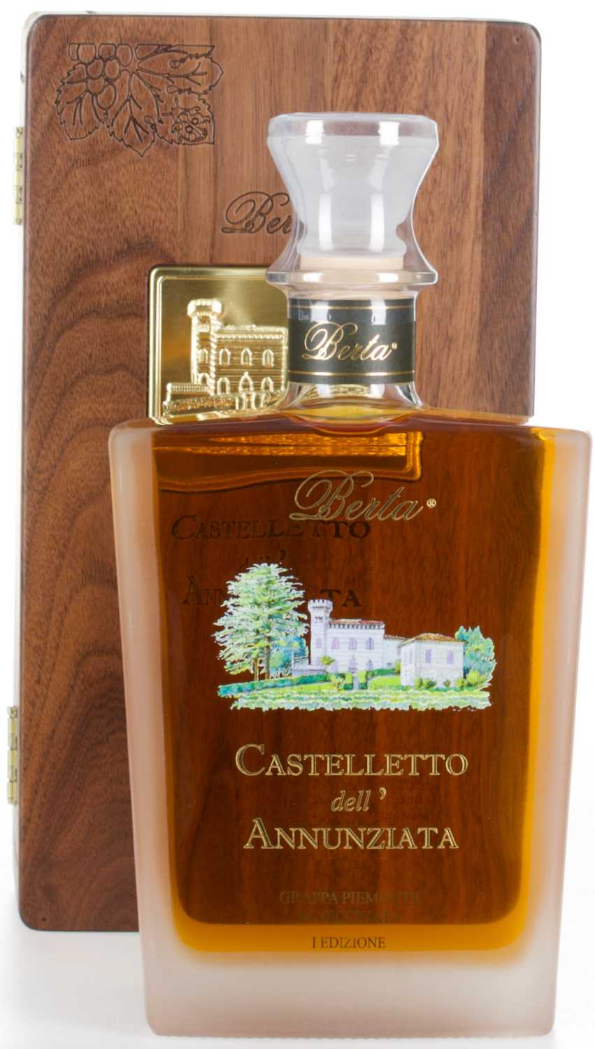 Dieser Grappa stammt von der Destillerie Berta und ist ein Liebesbrief an die Ursprünge ihrer Brennerei. Er wurde nämlich dem Castelletto dell'Annunziata gewidmet. Dabei handelt es sich um einen Landsitz, der in den Hügeln der Region um die italienische Stadt Asti liegt. Dort hat einst Paolo Berta, der Firmengründer, die erste Brennerei der Familie eröffnet. Mittlerweile ist die Destillerie Berta wieder nach Mombaruzzo zurückgekehrt, der Heimatort Paolo Bertas, und hat dort eine noch größere Destillerie etabliert. Wie dieser Grappa aber beweist: Die enge Verbindung zu ihren Wurzeln besteht weiterhin.