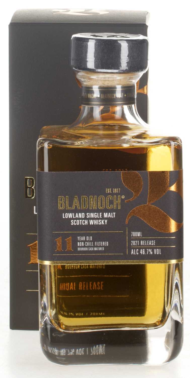 Bladnoch 13 Years ist ein Single Malt Whisky aus Schottland, genauer gesagt aus den Lowlands. Dieser schottische Whisky ist ex-Bourbon-gereift und kommt ohne Kaltfiltrierung aus. Er schimmert als dunkelgoldene Flüssigkeit im Glas. Das Bouquet brilliert durch feine Aromen, die zwar delikat, gleichzeitig aber auch opulent anmuten. Florale Noten vermischen sich hier mit spritzigen Zitrusfrüchten. Besonders die blumigen Noten erscheinen für diesen Single Malt Whisky aus Schottland passend. Bladnoch ist nämlich eine in den Lowlands gelegene, noch immer aktive Whiskybrennerei. Im gleichnamigen Dorf Bladnoch nahe Wigtown gelegen, ist sie die südlichste Whiskydestillerie Schottlands. Der Name leitet sich aus der gälischen Bezeichnung für Ort der Blumen" ab.