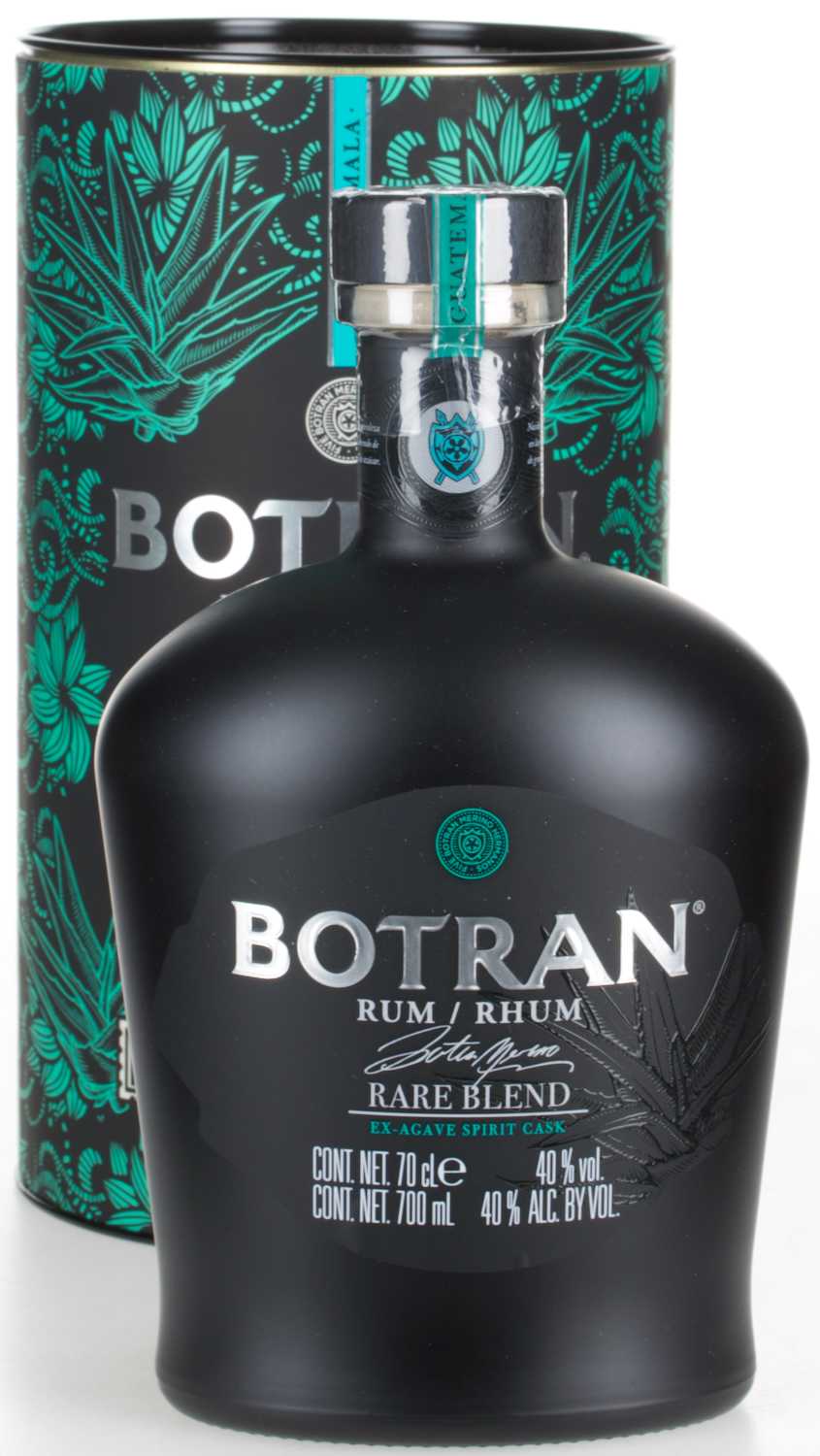 Da Bortan Rum in einer abgewandelten Solera-Pyramide reift, sind auch die enthaltenden Rums alle von unterschiedlichem Alter. Auf das Blending folgt dann das Agaven-Spirit-Fassfinish, bevor der Botran Rare Blend mit 40 Volumenprozenten abgefüllt wird. Die mattschwarze Flasche verbirgt den Blick auf den mahagonifarbenen Rum, der in der Nase sowohl Röstaromen als auch Zitrus, Vanille und Agavensüße aufweist. Auch am Gaumen bleibt sich der Botran Rare Blend ex Agave Spirit seinen Noten treu und greift im Abklang noch einmal eine leichte Schoko-Note auf.