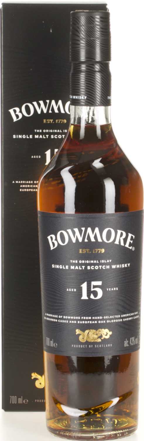 - Bowmore 15 Years Sherry Oak Collection 43% 0.700,7 l 43 % Vol.dreifache Fassreifungneu im KernsortimentAroma: dunkle Früchte, Zimt, Nelke, Schoko, etwas Rauch und Lakritz105,49 €Inkl. 19% Steuern , exkl. Versandkosten150,70 € / 1 l