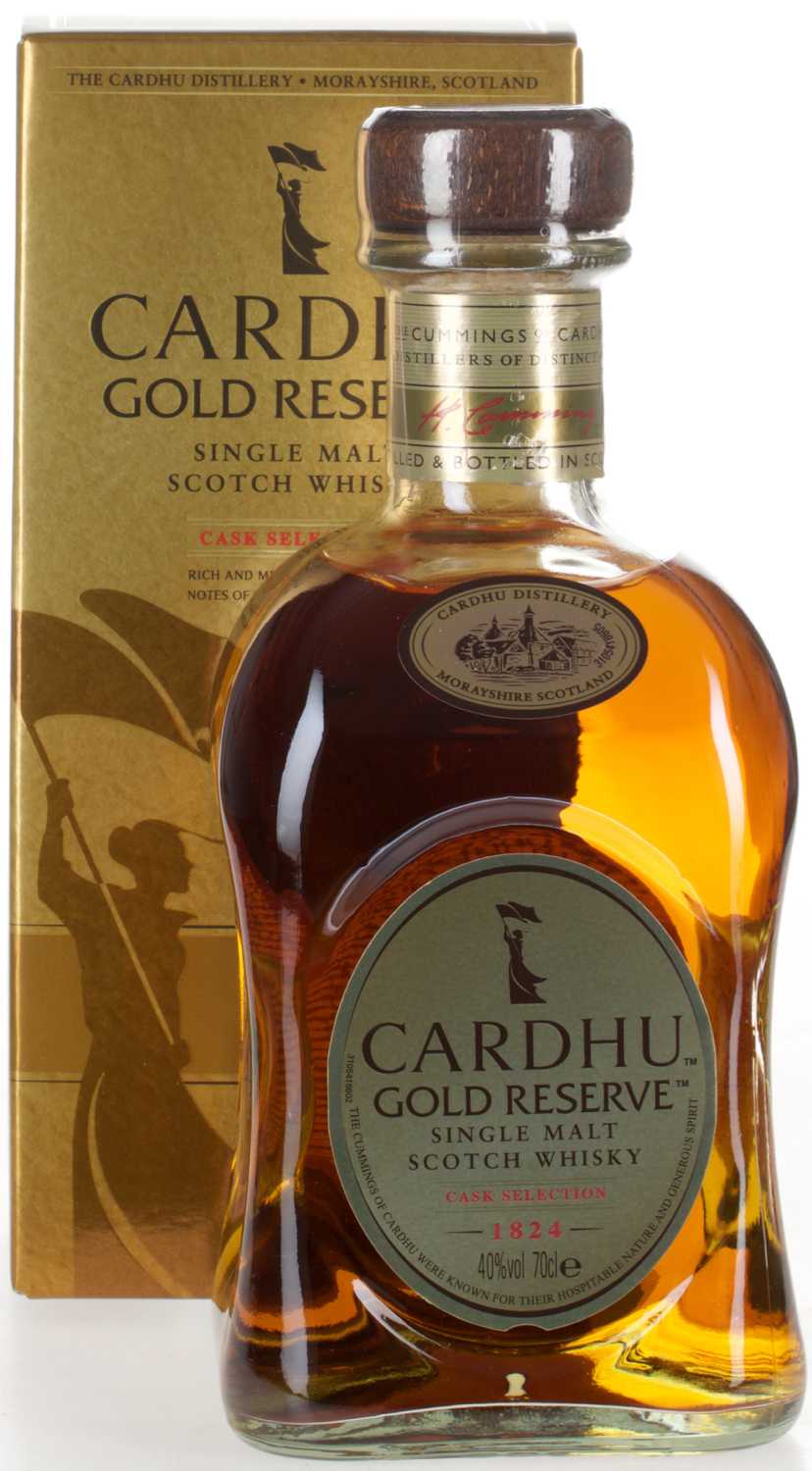 Cardhu Gold Reserve ist ein neuerer Single Malt aus den schottischen Highlands. Die Tradition von der Whiskybrennerei Cardhu reicht bis in das Jahr 1824 zurück. Somit kann im Rahmen des Herstellungsprozesses auf eine langjährige Erfahrung zurückgegriffen werden, welche sich auch in der Qualität der Produkte widerspiegelt. Der Whisky der Marke Cardhu wird standardmäßig in einer 12-jährigen Variante angeboten. Des Weiteren existieren jedoch weitere Abfüllungen, die sich dann in der Art und Dauer der Fassreifung unterscheiden.