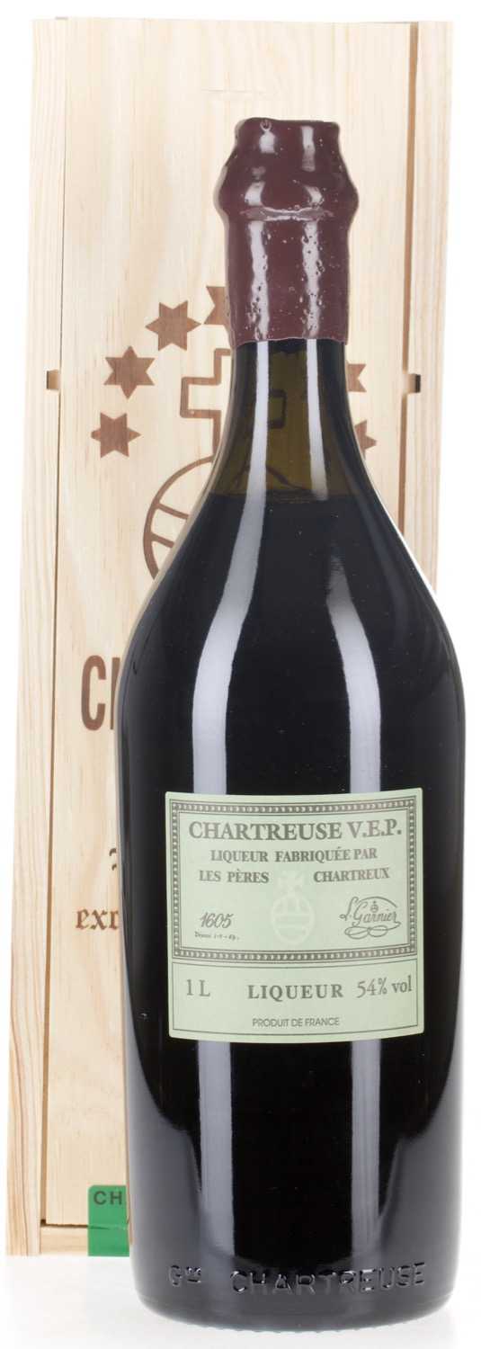 Liqueur Fabriquee par les Peres Chartreuse - L.Garnier. Das Kürzel VEP steht hier für "Vieillissement Exceptionnellement Prolongé" und bedeutet auf deutsch soviel wie "besonders verlängerter Reifungsprozess". Dieser Likör wird zunächst genauso hergestellt wie die normalen Chartreuse-Produkte, reift dann aber besonders lange in Eichenfässern und erreicht somit eine besonders hohe Qualitätsstufe. Jede Flasche von Chartreuse VEP erhält aufgrund der limitierten Stückzahl eine eigene Nummer. Genossen wird dieser Digestif am besten eiskalt.