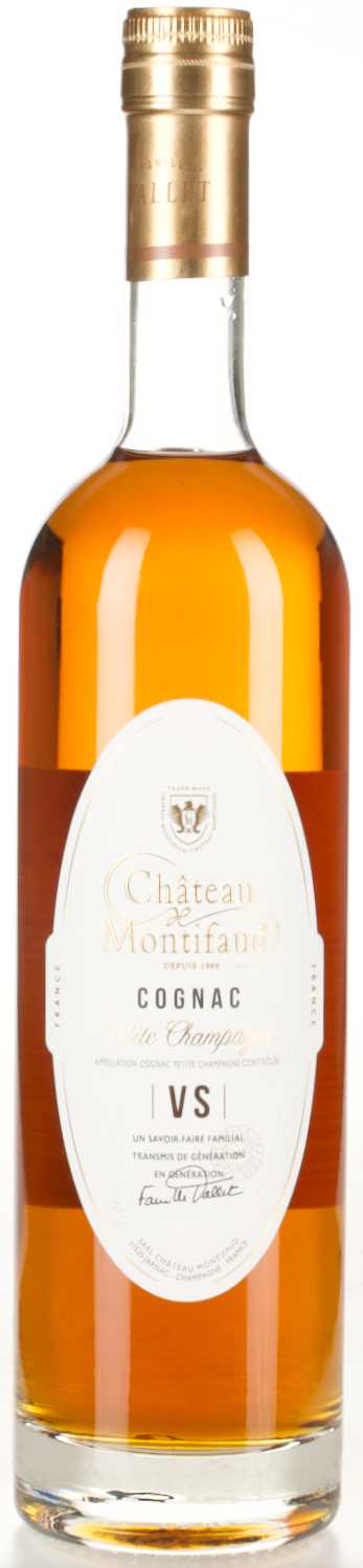Der Château Montifaud VS ist ein eleganter Winzercognac aus der Fine Petite Champagne, der sich durch seinen sehr harmonisch ausgewogenen Charakter auszeichnet. Die Qualitätsangabe VS steht für -Very Superior- und bezeichnet Cognacs, dessen jüngstes Destillat vor der Abfüllung mindestens zwei Jahre lagerte. Beim Chateau Montifaud VS handelt es sich um eine Zusammenführung von Cognacs, die sogar zwischen vier und sechs Jahre alt sind. Bei einem Fine Petite Champagne stammen die Trauben ausschließlich aus der Region Petite Champagne.