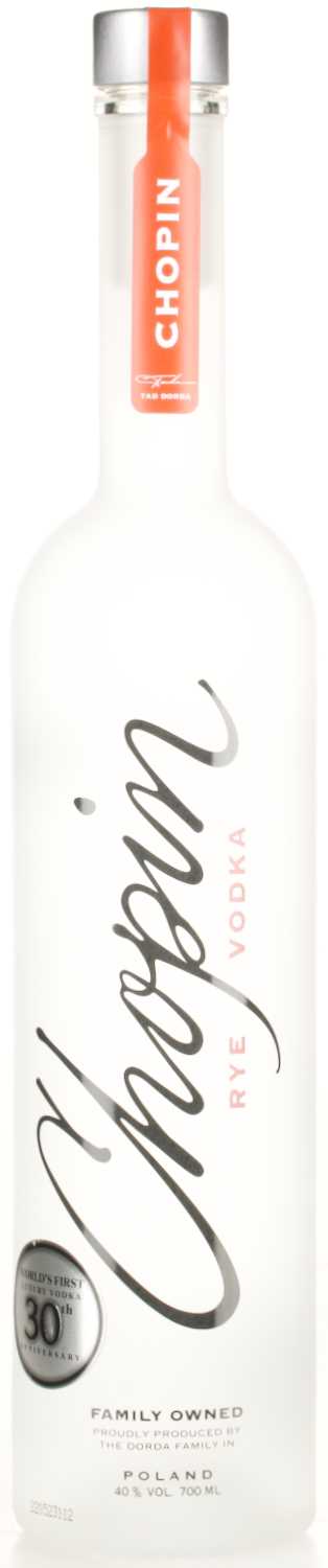 - Chopin Family Reserve Vodka 40% 0.700,7 l 40 % Vol.Single-Estate & Jahrgangsvodka2 Jahre Fassreifung in 50 Jahre alten Eichenfässernkomplexe Aromen von Erde, Frucht & Gewürzen148,59 €Inkl. 19% Steuern , exkl. Versandkosten212,27 € / 1 l