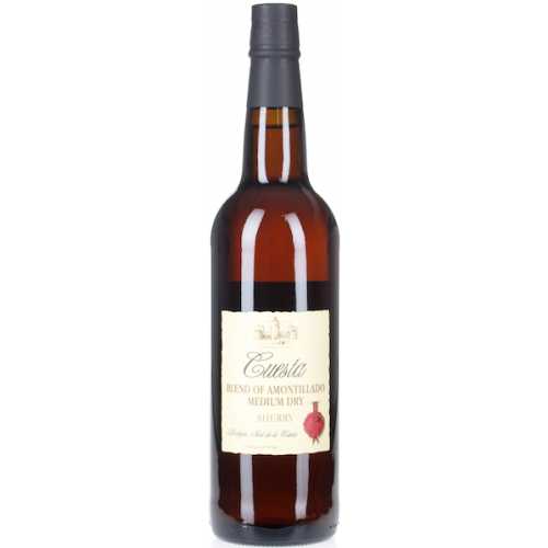 Cuesta Medium Dry Amontillado ist ein hochwertiger Sherry von unvergleichlicher Qualität. Für seine Herstellung werden zunächst nur Palomino Trauben, die aus den besten Weingärten des Gebietes stammen verwendet. Die werden bei kontrollierter Temperatur vergoren und anschließend mit Branntwein aufgesprittet. Hiernach erfolgt die Reifung. Wie für Sherry üblich erfolgt diese im Criaderas y Solera auch Soleraverfahren genannt, bei der junger Wein stets mit älteren vereint wird. Die Reifung erfolgt zunächst luftdicht unter einer Hefeschicht. Diese wird anschließend durch nochmalige Aufsprittung entfernt und eine weitere Phase der Reifung unter Lufteinfluss kann erfolgen.
