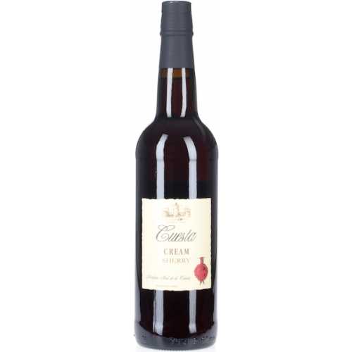 Der Cream Sherry der Bodegas José de la Cuesta ist ein süßer Sherry, der auf einem trockenen Oloroso basiert, der im typischen System -Solera y Criadera- ausgebaut wurde. Bei den Trauben handelt es sich um die Rebsorte Palomino. Nach einer durchschnittlich achtjährigen Reifezeit wurde er mit einem feinen Süßwein aus der Traube Pedro Ximénez vermählt, der den nussigen Oloroso um eine süßliche Rosinennote erweitert. Es entsteht ein Cream, der sich im Glas in einem dunklen Bernsteinfarbton mit rubinroten Reflexen präsentiert. Dieser liebliche Sherry kommt mit einem üppigen Bouquet mit Noten von Trockenfrüchten und einem leicht rauchigen Anklang daher. Am Gaumen erscheint er süßlich und von reifer, samtiger Struktur und insgesamt sehr angenehm ausgewogen. Im Geschmack sind getrocknete Früchte wie Rosinen, Pflaumen und Datteln zu erkennen, die von einem Hauch Zartbitterschokolade begleitet werden.
