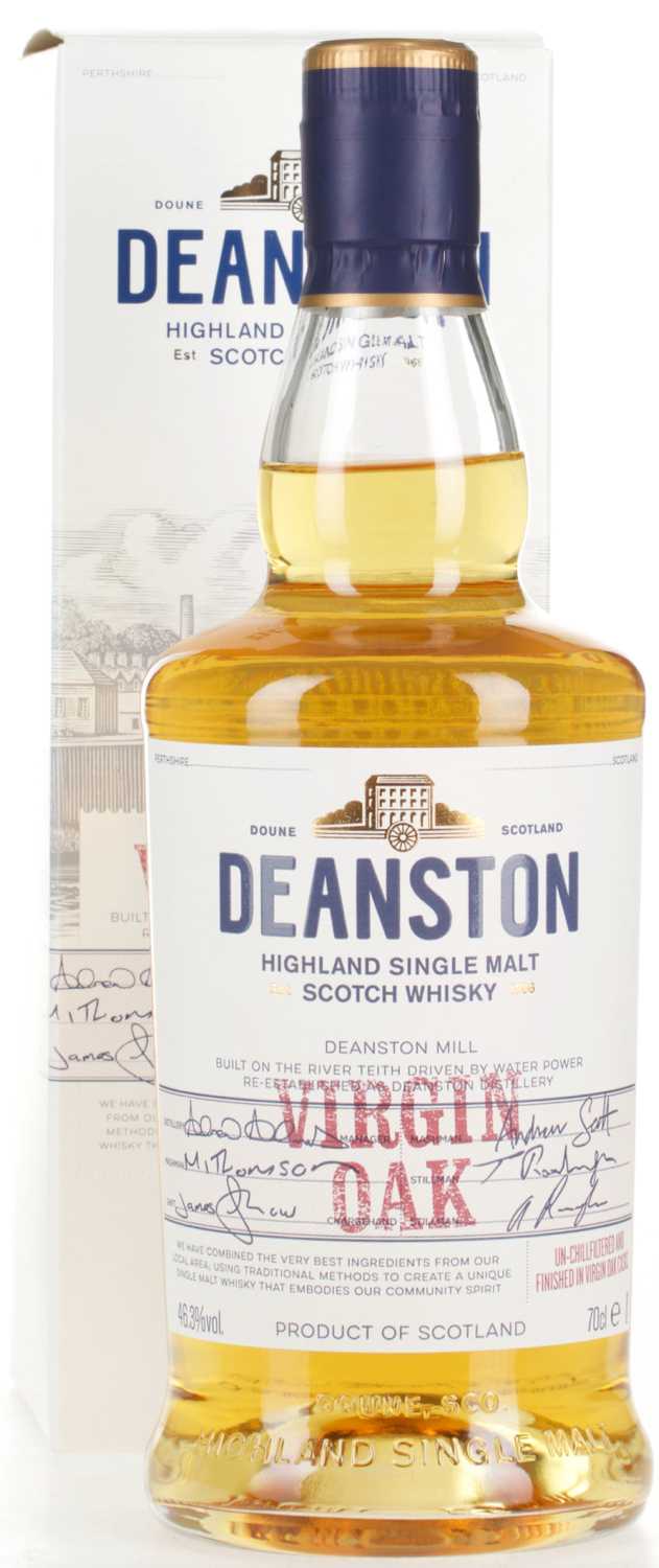 In den südlichen Highlands liegt die Deanston Destillerie, aus welcher dieser Highland Single Malt Scotch Whisky stammt. Für den Deanston Virgin Oak werden junge Single Malt Whiskys, welche in ehemaligen Bourbon Fässern aus Kentucky reiften, miteinander vermählt. Die weitere Lagerung erfolgt dann in neuen, frisch gebrannten Eichenfässern. Daher auch der Name „Virgin Oak“ als Hinweis auf das Finishing in frischen, „jungfräulichen“ Eichenfässern. Vor der Abfüllung wird weder Nachkoloriert noch Kaltfiltriert, um die natürliche Farbe und das Aroma zu erhalten - wie es auf der Flasche schon steht: „exactly as it should be“. Obwohl vergleichsweise, jedoch nicht überraschend, hell und aus jungen Whiskys geblendet, konnte der Deanston Virgin Oak bereits mehrere Preise für die Deanston Destillerie gewinnen. Darunter finden sich, neben weiteren Auszeichnungen, Bronze und Silber der International Spirits Challenge sowie Silber der International Wine & Spirits Competition.