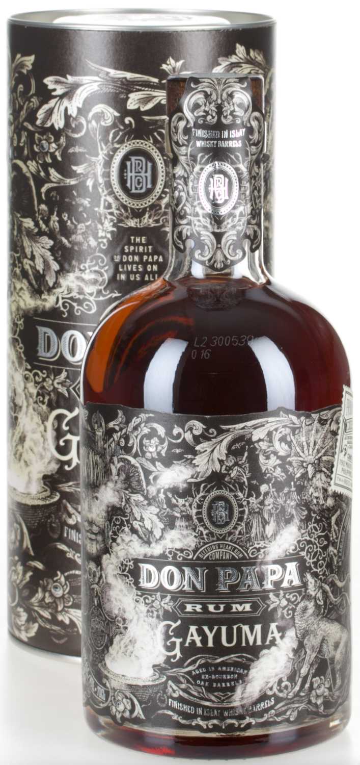 Der Ursprung des Don Papa Gayuma ist aromatische Molasse von der Heimat des Rums, der Insel Negros. Auf die Fermentation und die Destillation folgt für den Don Papa Gayuma die dreijährige Reifung im ehemaligen Bourbon-Fass. Dann beginnt für den Gayuma die Weiterreise. Als Nächstes darf er über ein halbes Jahr lang die satten Fruchtaromen aus dem Weinanbaugebiet Rioja inhalieren. Die Weinfässer aus dem Norden Spaniens beherbergten einst kräftigen Rotwein, bevor sie für den Don Papa noch einmal aufbereitet- und getoastet werden. Doch das ist den Machern in der Bleeding Heart Rum Company, den Urvätern des Don Papa Rums, nicht genug. Sie nehmen den Premium-Rum noch einmal geschmacklich mit auf eine Reise nach Schottland. Das finale, dreimonatige Finish erhält der Don Papa Gayuma nämlich im Ex-Islay-Whisky-Fass. Das Dreierlei vom Fass beschert dem Melasse-Rum sein komplexes Aroma. Genießer dürfen sich auf satte Eiche und etwas Tabak freuen, auf Lagerfeuer und Vanille, auf einen Hauch Milchschokolade, auf etwas Kräuter und eine Nuance Minze, auf getrockneten Zimt und auf süße Früchte.