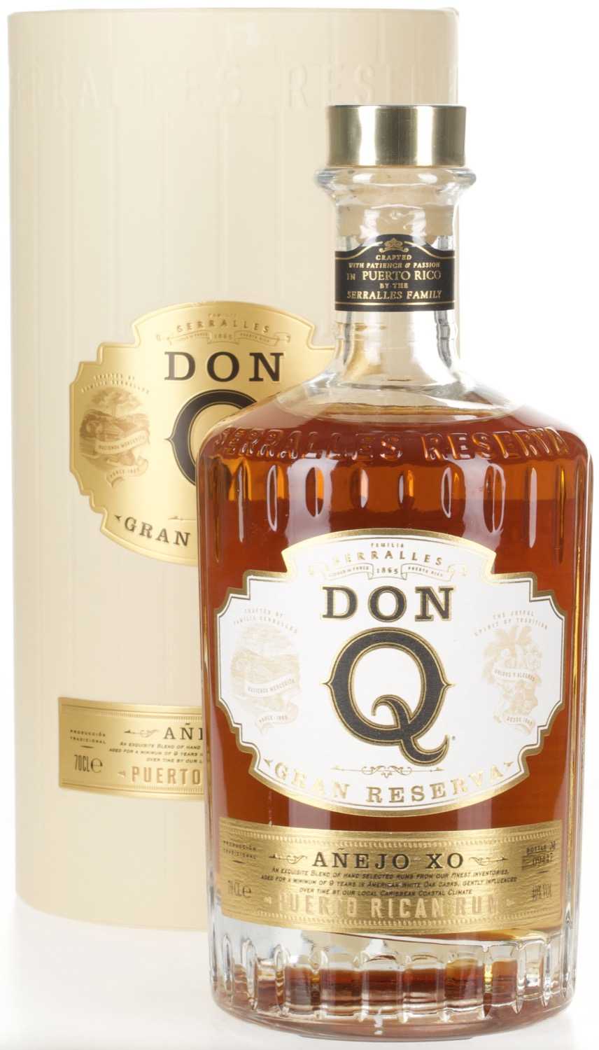 Der Don Q Gran Reserva Anejo XO ist ein im Eichenfass gereifter Rum der puerto ricanischen Rummarke Don Q. Die im Namen an die literarische Figur Don Quixote angelehnte Rum Marke wird von der traditionsreichen Destillerie Serralles hergestellt und ist die beliebteste Rummarke auf Puerto Rico. Das Zuckerrohr für die Rum Herstellung stammt direkt von der eigenen Plantage des Familienunternehmens.