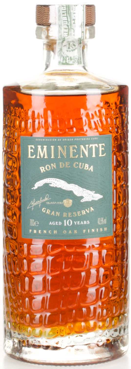Zwei Destillate bilden den Grundstock für den Rum-Blend: ein sehr hochprozentiger Spirit und ein weniger prozentiges Aquadiente. Letzteres ist ein Destillat, welches theoretisch ein Neutralalkohol landwirtschaftlichen Ursprungs ist, in diesem Fall aber natürlich aus Zuckerrohr gewonnen wird. Beide Destillate reifen zehn Jahre getrennt voneinander, das Aquadiente in einem besonders trockenen Keller. Das hat zur Folge, dass das Wasser schneller verdunstet als der Alkohol und sich die Aromen intensivieren. Bevor es ans Bottling geht, werden beide Spirituosen miteinander vermählt und verbringen noch drei weitere Monate im französischen Eichenfass. In der markanten, an Krokodils-Haut erinnernde Flasche, findet sich nun ein edler Tropfen in herrlicher Mahagonifarbe. Aus dem Glas strömen die Aromen von Kaffee und roten Früchten, etwas florale Nuancen sowie Honig und Vanille. Geschmeidig und fruchtig geht es am Gaumen weiter, Aprikosen und Orangen kommen hinzu, ebenso etwas Sandelholz und Haselnuss. Im Finish wird der Eminente Gran Reserva 10Y noch einmal um süß-würzige Komponenten erweitert.