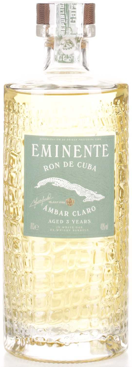 Das Bouquet verhält sich weich und delikat und glänzt durch fruchtige Noten von grünem Apfel und Birne. Aromen von Kamille und Vanille sowie Nuancen von gerösteter Walnuss und Karamellcreme sind neben würzigen Anklängen von Muskatnuss und Pfeffer zu erkennen. Am Gaumen präsentiert sich Eminente Ambar Claro vollmundig und gut ausbalanciert. Der Geschmack lässt etwas an frisches Gebäck denken. Noten von gekochten Birnen mit gerösteten Gewürzen verleihen der Spirituose eine angenehme Frische. Dabei bleibt der Rum aus Kuba schön knackig und fruchtig. Die Herstellung erfolgt aus 100% kubanischem Zuckerrohr. Die 3-jährige Reifung findet in in Ex-Whisky-Fässern aus Weißeiche statt.