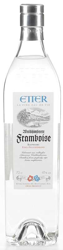 Etter Framboise ist ein hervorragender Himbeergeist aus dem Hause Etter. Dieser ist gleichzeitig der einzige Geist des Schweizer Unternehmens, das ansonsten weit über die Landesgrenzen hinaus für seine hochwertigen Brände bekannt ist. Das verwendete Obst kommt zu 100% aus der Schweiz und wird mit höchster Sorgfalt weiterverarbeitet. Gerade deshalb sollte man Etter Framboise unbedingt probieren. Für seine Herstellung werden vollreife Schweizer Himbeeren in Alkohol eingelegt und nach abgeschlossener Mazeration destilliert. Anschließend findet eine zwölfmonatige Reifung statt, die dem fertigen Produkt das gewisse Etwas verleiht. Der so entstandene Himbeergeist begeistert mit seinem intensiven und vollmundigen Geschmack.