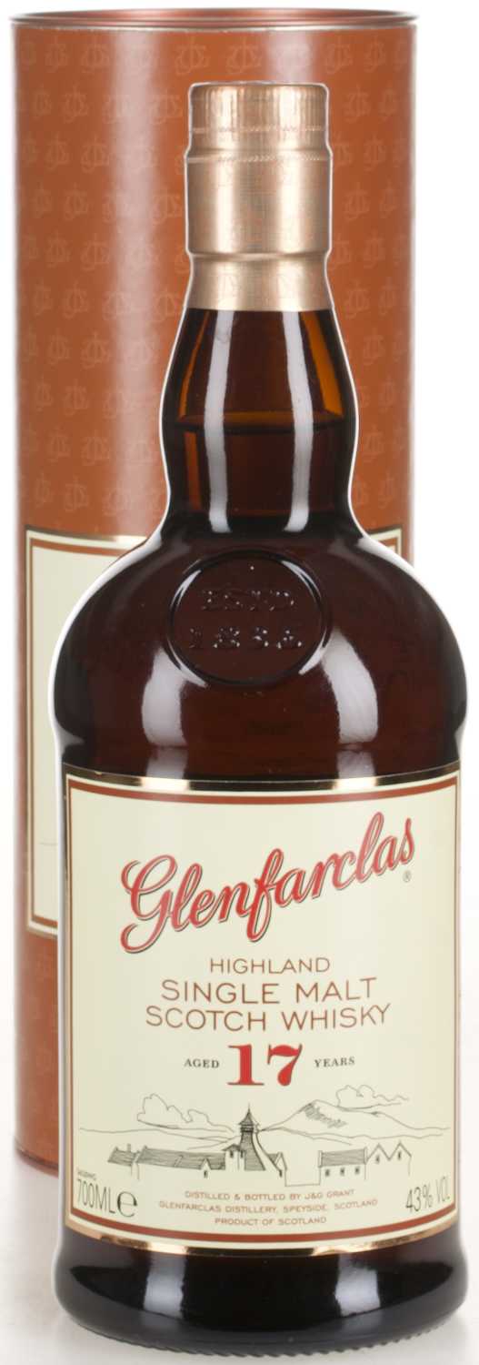 Glenfarclas 17 Years old ist ein Whisky aus den schottischen Highlands. Dieser Single Malt Whisky aus einer der letzten noch privat geführten Brennereien reift nach der Destillation für 17 Jahre in Eichenholzfässern heran. Ein Großteil dieser Fässer wurde zuvor für die Reifung von Sherry verwendet und hat so einen entscheidenden Anteil an der Aromatik des fertigen Whiskys.