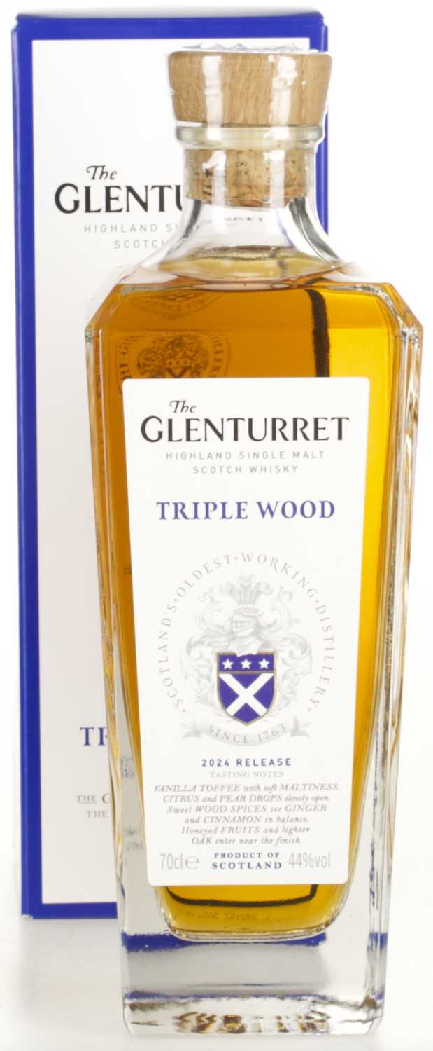 Der Glenturret Triple Wood gehört zu einer dreiteiligen Reihe von Sonderabfüllungen, die daneben auch noch eine Sherry Edition und eine Peated Edition bietet.