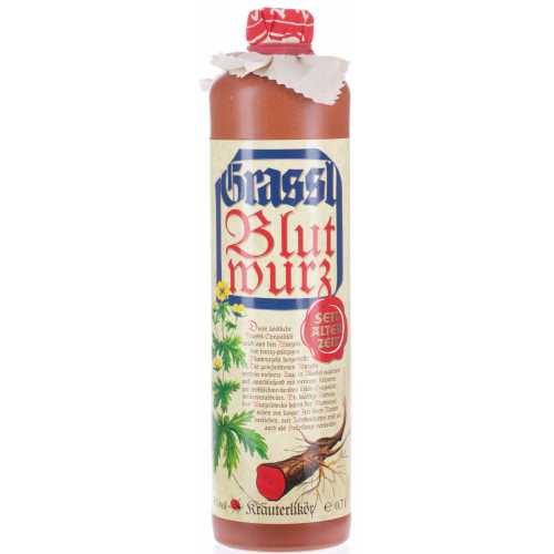 Dieser tiefrote Blutwurz Kräuterlikör von der Firma Grassl aus Berchtesgaden wird aus einer perfekt aufeinander abgestimmten Komposition aus 12 verschiedenen Kräutern und Johannisbrotansatz hergestellt. Das Ergebnis ist ein raffinierter Kräuterlikör mit einer herben und würzigen Aromatik. In Bayern wird Blutwurz gerne als kerniger und kraftvoller Digestif nach einer deftigen Mahlzeit genossen.  Blutwurz trinken heisst Bayern in seiner ursprünglichsten Form zu geniessen.