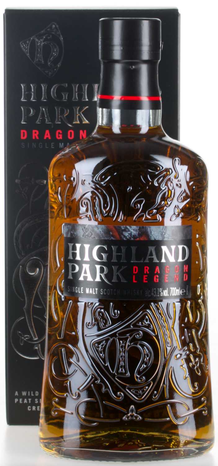 Highland Park Dragon Legend ist ein Single Malt Scotch Whisky aus der nördlichsten Brennerei Schottlands, genauer aus Kirkwall auf den Orkney Inseln. Dieser Whisky ist als eine Hommage an die Geschichte von Sigurd, dem Drachentöter - uns besser als Siegfried bekannt - gedacht. Dragon Legend wurde von den alten Geschichten der Wikinger inspiriert, die die Insel Orkney über 600 Jahren lang beherrschten. Die Vorfahren der heutigen Brennereibesitzer fürchteten und verehrten Drachen, die zwar mystische Fähigkeiten besaßen, aber auch die Kräfte des Bösen repräsentierten. Der Legende nach erschlug der Wikingerkrieger Sigurd mit Tapferkeit und List den bösen Fafnir, leckte das Blut des Drachens von seinem Daumen und erhielt so mächtige Gaben. Mit dieser Abfüllung zollt die Brennerei aus Schottland dem Ehrenkodex der Wikinger Tribut.