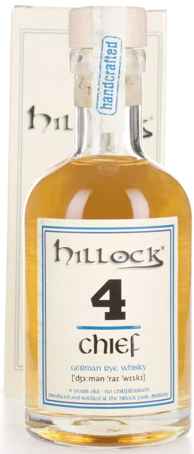 Der Hillock 4 Chief ist ein regionaler Roggenwhisky aus dem Ruhrgebiet. Die Hillock Park Distillery gehört zum Traditionsunternehmen Heinrich Habbel. Die ehemalige Kornbrennerei hat ihr Sortiment mittlerweile um viele Sparten erweitert. Die jüngste und mittlerweile auch eine der erfolgreichsten ist der Whisky. Hierfür gründete Habbel 2013 die Hillock Park Distillery mit einer eigenen Pot Still Destillierblase, die eine handwerkliche und traditionelle Produktion ermöglicht. Seit der Gründung 1878 legt die Brennerei einen großen Wert auf Regionalität. Diesen unterstreicht sie beim 4 Chief mit der Verwendung von regional angebautem Roggen.