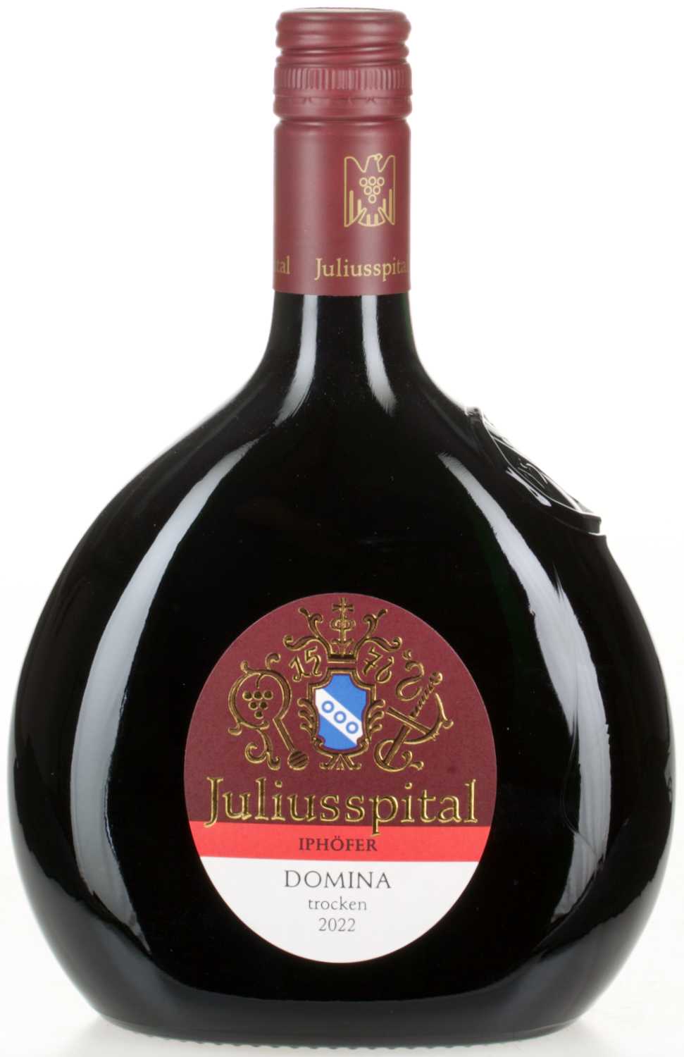 Das Weingut Juliusspital ist das zweitgrößte Weingut in Deutschland. Das Weingut führt in seinem breitgefächerten Sortiment nicht nur erstklassige Weißweine, sondern auch aromatische Rotweine. Einer dieser hervorragenden Rotweine ist der Iphöfer Domina trocken. Er überzeugt durch seinen fruchtigen Charakter mit angenehmer Säure.