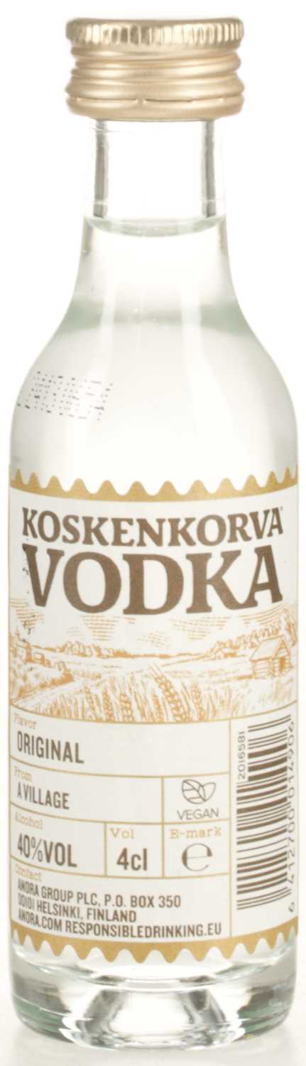- Koskenkorva Vodka 40% 1.001 l 40 % Vol.marktführer in FinnlandWeich & angenehmHochwertiges Flaschendesign18,49 €Inkl. 19% Steuern , exkl. Versandkosten18,49 € / 1 l