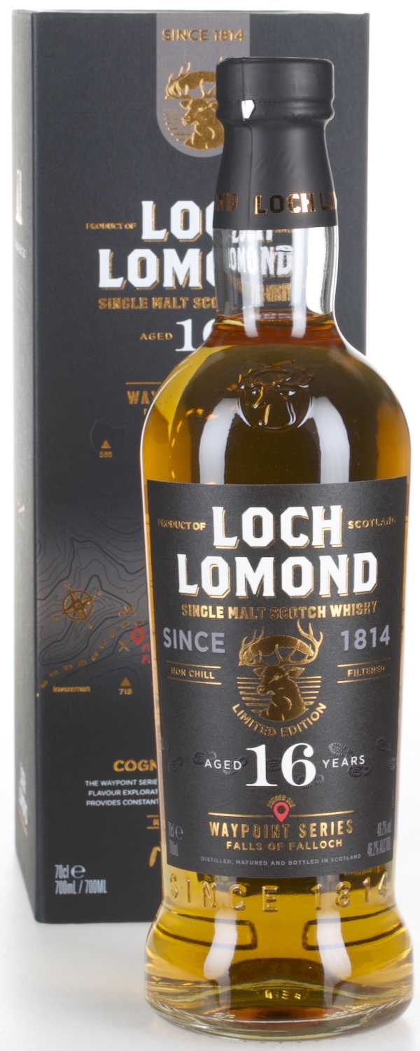 Die Waypoint Series greift verschiedene markante Punkte innerhalb der Parklandschaft auf. Die erste Auskopplung ist den Falls of Falloch gewidmet. Der überschaubare Wasserfall fällt rund zehn Meter hinab und erstreckt sich über mehrere kleine Schwellen. Jene Kraft des Wassers und die Schönheit der Natur veranlassten Master Blender Michael Henry dazu, einen Whisky zu erschaffen, der ebenfalls Kraft und Schönheit miteinander vereint. Mit dem Loch Lomond 16 YO Falls of Falloch ist ihm dies gelungen.