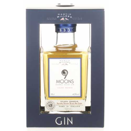 Grundlage des Martin Miller's 9 Moons Gin Solera Reserve ist ein Dry Gin aus den Botanicals Wacholderbeere, Zimtkassie, Koriandersamen, Angelikawurzel, Muskatnuss, Süßholz, Schwertlilie sowie ein kleiner Teil Limettenschalen. Der Clou ist, dass bei der Herstellung zwei Mazerate entstehen; eins aus den eben genannten Zutaten und eins aus Bitterorangen-, Zitronen- und Limettenschalen. In einem getrennten Destillationsprozess werden beide Mazerate einer Destillation in Copper Pot Stills unterzogen. Anschließend werden beide Mazerate miteinander vermengt. Dazu kommt eine Gurken-Lösung.