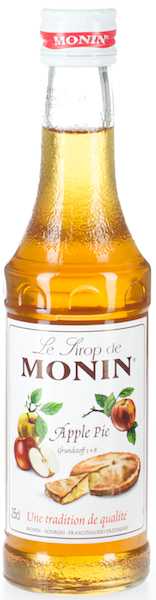 Monin Apple Pie ist ein ausgefallener Sirup mit dem unwiderstehlichen Aroma von frischem, englischen Apfelkuchen. Der Sirup besitzt eine goldene Farbe und erinnert vom Duft an karamellisierten Apfel, Karamell und Biskuit. Am Gaumen zeigt sich eine ansprechende Süße und ein fast buttriges Mundgefühl. Ein Hauch von Zimt rundet den Geschmack ab und macht den Sirup zu einer vielseitig einsetzbaren Spezialität. Unter Sahne gerührt passt er hervorragend zu Gebäck. In Latte und Kaffees ist er eine wundervolle aromatische Ergänzung.