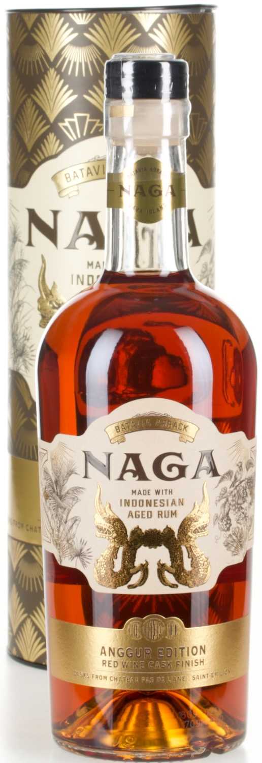 Das Ergebnis ist ein Spirit Drink mit einer betörenden Farbe und ebenso zauberhaftem Aroma. Im Glas schimmert Naga Anggur Edition in einer dunkelgoldenen Farbe mit rötlichen Reflexen. Das Aroma kann als überaus vielschichtig beschrieben werden. Würzige Noten von Holz und fruchtige Aromen roter Beeren verbinden sich mit leichten Vanilleanklängen. Am Gaumen offenbaren sich kandierten Früchte und feine Tannine, die wiederum dem zuvor im Fass befindlichen Rotwein zu verdanken sind. Das Finale ist anhalten und dabei fruchtig-würzig.