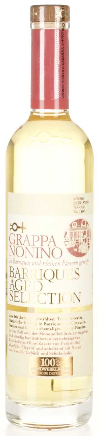 Nonino Grappa Barrique Aged Selection ist ein gereifter Grappa von einer der bekanntesten Brennereien Italiens. Das Unternehmen Nonino ist seit mehreren Generationen in der Grappaherstellung aktiv und benutzt für die Destillation ausschließlich kleine Kupferbrennkessel, die nach den Spezifikationen des Unternehmens gefertigt wurden.
