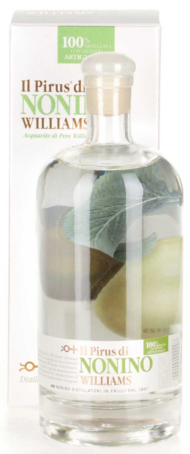 Nonino Pirus ist für viele sicherlich ein überraschendes Produkt, da die meisten das traditionsreiche Haus zunächst einmal mit Grappa in Verbindung bringen. Schon seit langem stellen die Italiener aber unter anderem auch großartige Obstbrände her. Als Williamsbirnenbrand gehört der Nonino Pirus ebenfalls in diese Kategorie. Für seine Herstellung kommen nur erlesene Birnen aus dem Vanosta Tal in Frage, die zum perfekten Reifepunkt geerntet und sorgsam weiterverarbeitet werden. Die Fermentation des Birnenmosts erfolgt in Vakuumstahltanks und ist somit besonders schonend. Die anschließende Destillation in den hervorragenden Dampfbrennblasen des Hauses sorgt weiterhin dafür, dass das gesamte Aroma der intensiven Früchte auch später in der Flasche landen kann. Dabei ist die produzierte Menge von Jahr zu Jahr sehr unterschiedlich, da bei der Qualität der Früchte keinerlei Kompromisse eingegangen werden. Zuhause sollten Sie den außergewöhnlichen Brand stets leicht gekühlt bei etwa 12ºC genießen. Dann entfaltet sich das volle Aroma der Birnen am besten. Vor allem, wenn man dem Destillat einige Minuten zum Atmen gönnt. Dann durchströmt der intensive Duft den Raum und bereitet einen auf den vollmundigen und betont fruchtigen Geschmack zu, den man beim Genuss des Nonino Pirus erwarten darf.