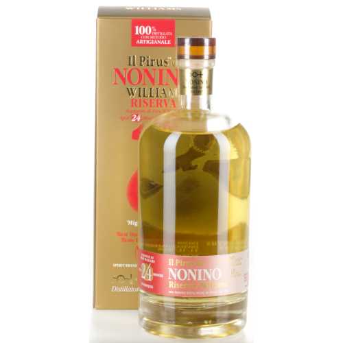 Hinter der intensiven Bernsteinfarbe verbirgt sich eine elegante und frische Nase. Dominant ist natürlich die Williamsbirne, die mit Noten von Trockenfrüchten den großen aromatischen Reichtum ausmacht. Im Mund bleibt ebenfalls die Birne vordergründig. Noten von kandierten Früchten und Gebäck komplettieren den reichen und anhaltenden Geschmack. Besonders gut passt der Pirus Nonino Riserva Aged 2 years zu verschiedenen Käsesorten. Auch Schokolade in all ihren Ausdrucksformen ist eine hervorragende Ergänzung zu diesem Obstbrand.