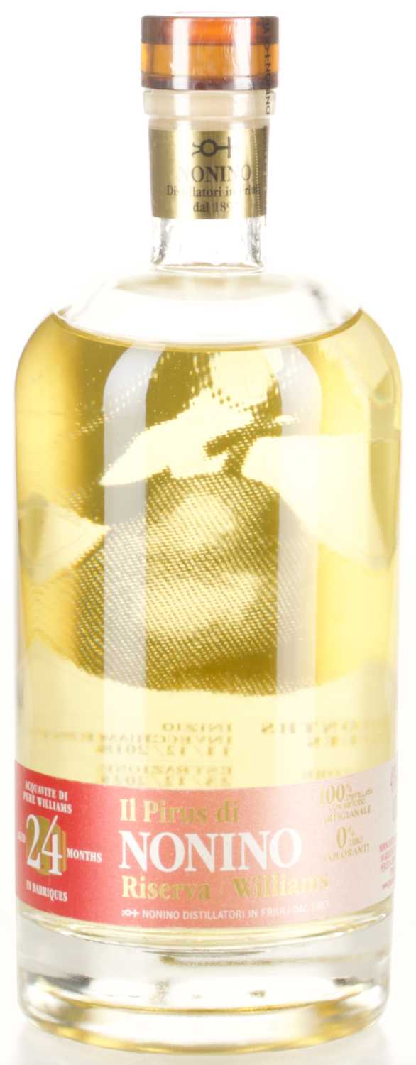 Als Rohmaterial für den Obstbrand dienen ausschließlich Birnen der Sorte Williams. Diese werden in Holzkisten zur Destillerie transportiert, wo sie, bevor sie zur Gärung in Edelstahlbehälter gelangen, manuell gespült und bearbeitet werden. Dabei soll der zu reife Teil der einzelnen Frucht entfernt werden, der dem Destillat seine Eleganz nehmen würde. Für die Destillation setzt Nonino auf das Copper Pot Still-Verfahren. Die Destillation nach der handwerklichen Methode erfolgt langsam, um den flüchtigen Bestandteilen, die für die Düfte verantwortlich sind, eine angemessene Verdampfung und anschließende Kondensation zu ermöglichen. So erhalten sich die wertvollen organoleptischen, also die auf einen sensorischen Rezeptor erregend wirkenden, Eigenschaften der Frucht im Obstbrand.
