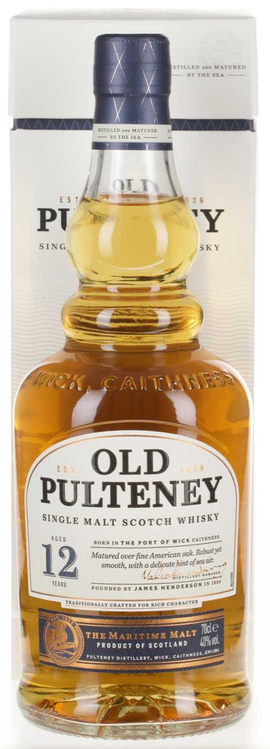 Der Old Pulteney 12 Years ist ein Single Malt aus der nördlichsten Brennerei auf dem schottischen Festland. Old Pulteney gehört seit 1995 zu Inver House Distillers Ltd. und liegt in der Hafenstadt Wick. Es ist eine Brennerei, um die es lange Jahre sehr still war, die aber in den letzten zehn Jahren einen deutlichen Aufschwung erlebt hat. Der Old Pulteney 12 Years wurde deshalb auch sehr lange nicht produziert. Im Jahre 2018 folgte dann eine Neuaufstellung des gesamten Sortiments. Der Single Malt wurde ausschließlich in Ex-Bourbonfässern gereift, was zu einem starken Einfluss der Bourbon-Süße führt, die den charakteristischen Salzgehalt des Küstenwhiskys ausgleicht.