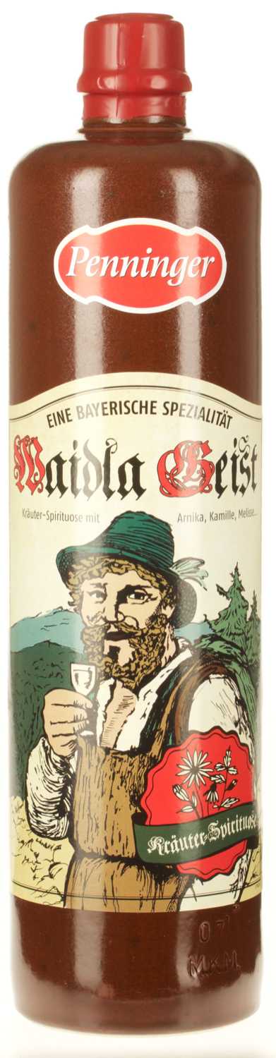 Der Waidla Geist von Penninger ist ein klarer Kräuter-Geist, der aus Kräutern und Wurzeln des bayerischen Waldes gewonnen wird. Das Rezept geht auf Stefan Penninger III. zurück, der diese bayerische Spezialität bereits in den 1960er-Jahren kreierte. Für diesen urigen Kräuter-Geist aus der Alten Hausbrennerei Penninger in Bayern werden u. a. Arnika, Kamille, Enzian, Melisse und Bärwurz verwendet. Das jeweils wunderbar aufeinander abgestimmte Aromenspiel wird durch Mazeration in landwirtschaftlich erzeugtem Alkohol gewonnen. Nach der Destillation wird der Geist ohne Zusatz von Zucker abgefüllt. Einen traditionsreichen Eindruck vermittelt die klassische Steingutflasche, die nicht nur schön anzusehen ist, sondern Vorteile für die Temperaturregelung und Konservierung ihres Inhalts bietet.