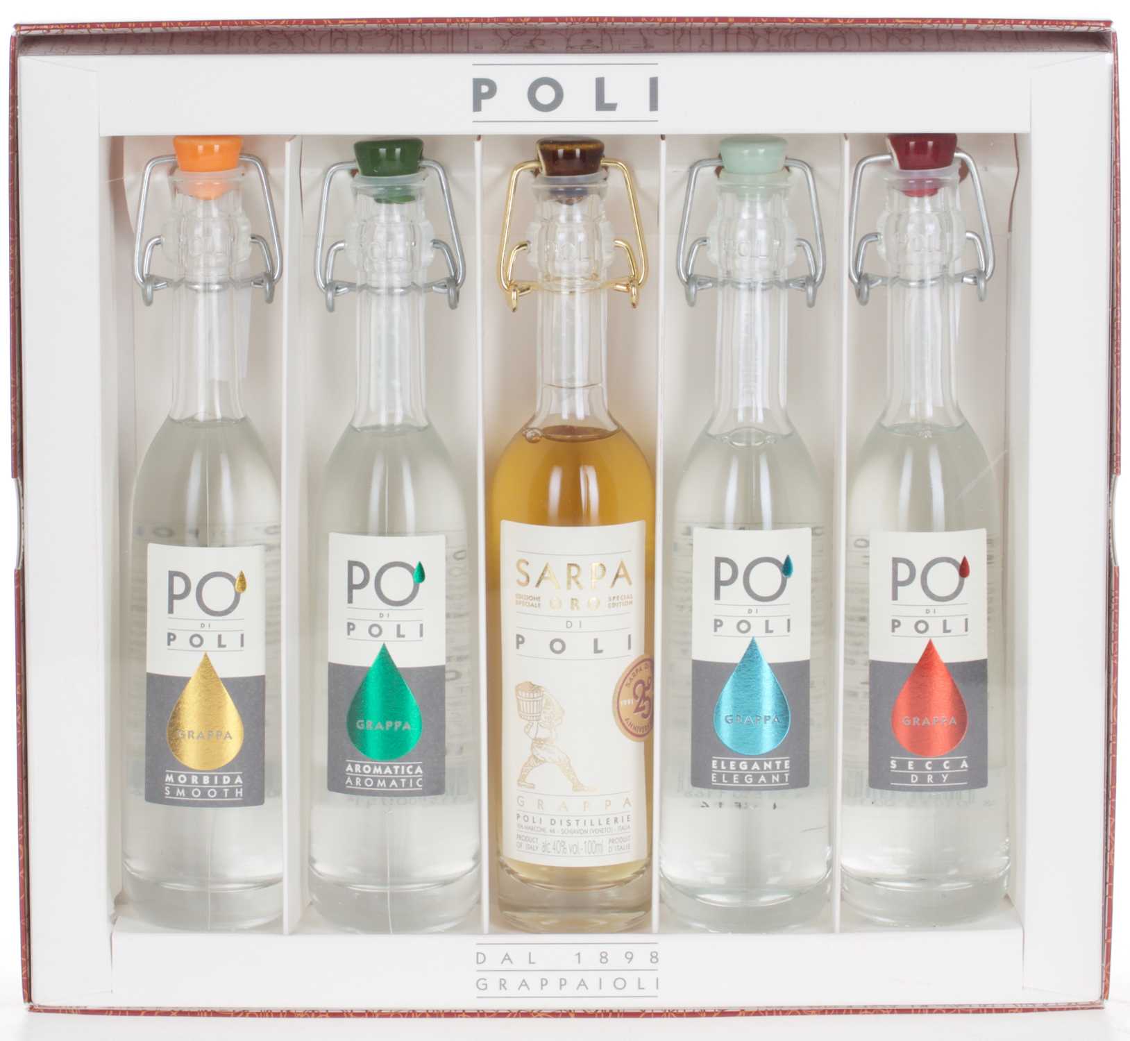 Der Poli Baby Pack ist ein tolles Geschenk für jeden Grappa Liebhaber. Er besteht aus fünf kleinen 0,1l Fläschchen der Sorten: