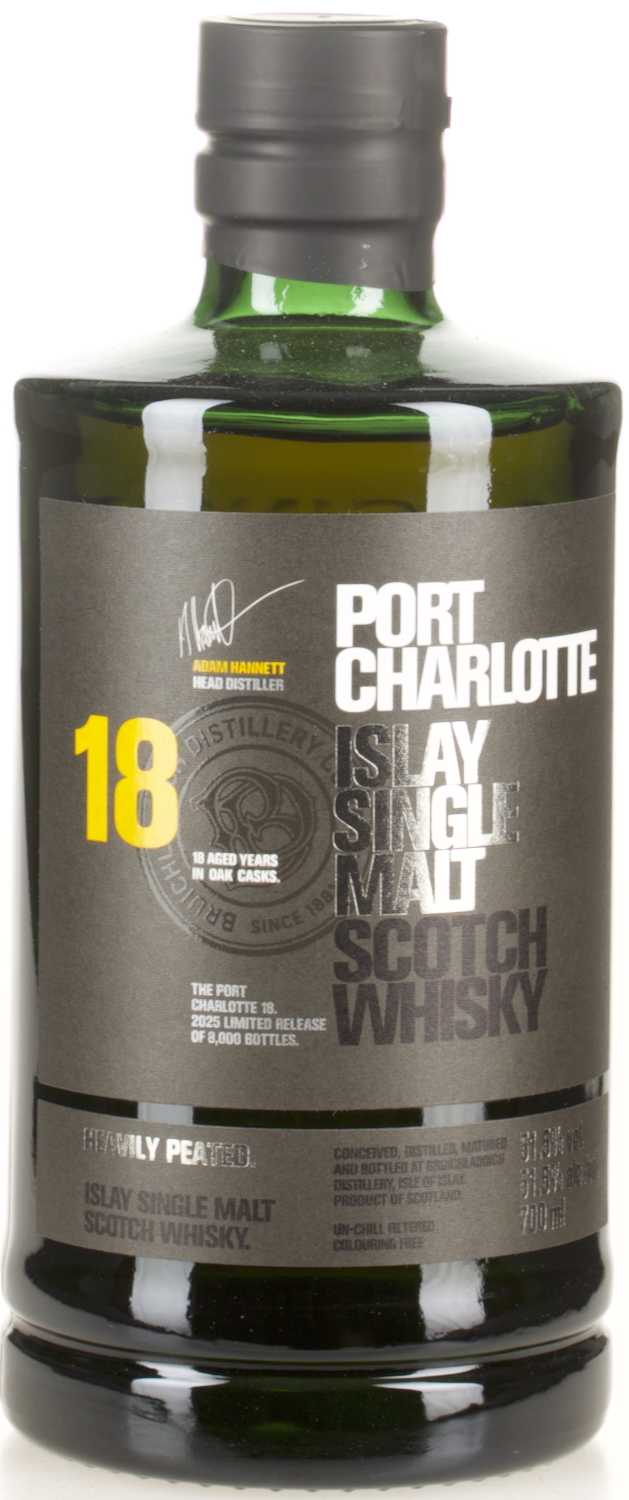 Mit dem Port Charlotte 18 Year Old präsentiert Bruichladdich im Jahr 2025 eine wahre Ikone der Islay-Whiskys. Seit 2005 durfte dieser Single Malt in handverlesenen Fässern heranreifen und bringt nach fast zwei Jahrzehnten die volle Tiefe und Eleganz seiner Heimat zum Ausdruck.