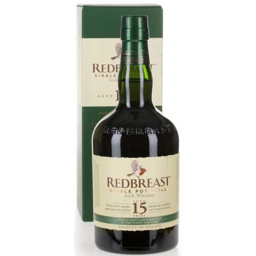 15 Jahre alt, Non Chill Filtered - im Oloroso Sherryfass und im Bourbon Fass gereift. Der Redbreast 15y hat das typisch intensive Irish Pure Pot Still-Aroma. Dieser Whiskey besitzt einen mächtigen Körper, ist jedoch immer noch angenehm fruchtig. Am Gaumen zeigen sich Aromen von Vanille, dezenten Holznoten und reifer Banane. Der traumhaft intensive Abgang schmeckt nach dunklen Beerenfrüchten. Dieser Whiskey ist übrigens nur in sehr begrenzter Stückzahl erhältlich.