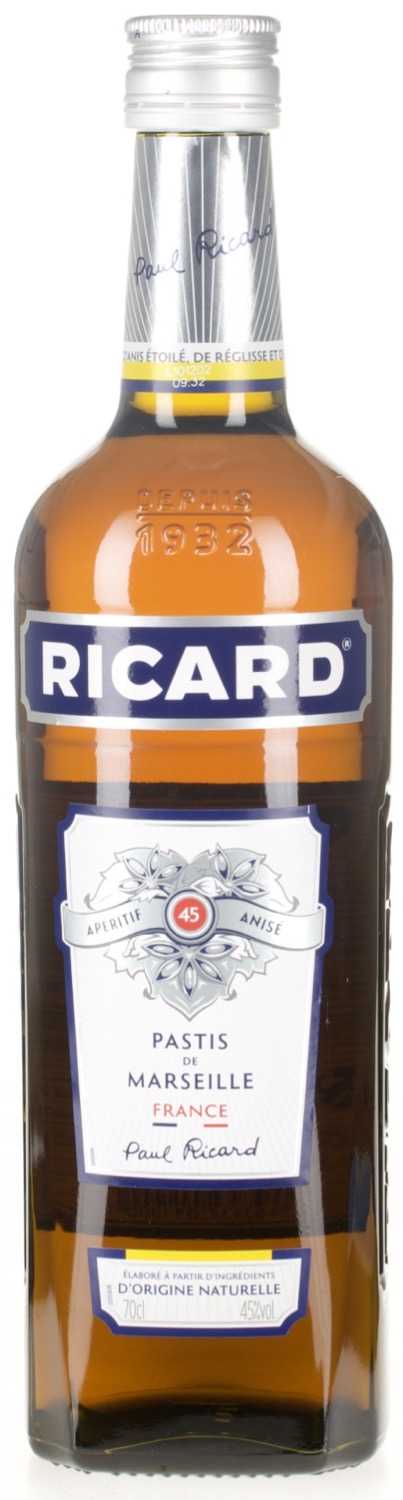 - Ricard Pastis 45% 1.001 l 45 % Vol.Pastis de Marseille mit Anis, Süßholz & Kräuternentwickelt 1932 von Paul Ricardideal pur, mit Wasser oder als Aperitif genießen27,49 €Inkl. 19% Steuern , exkl. Versandkosten27,49 € / 1 l